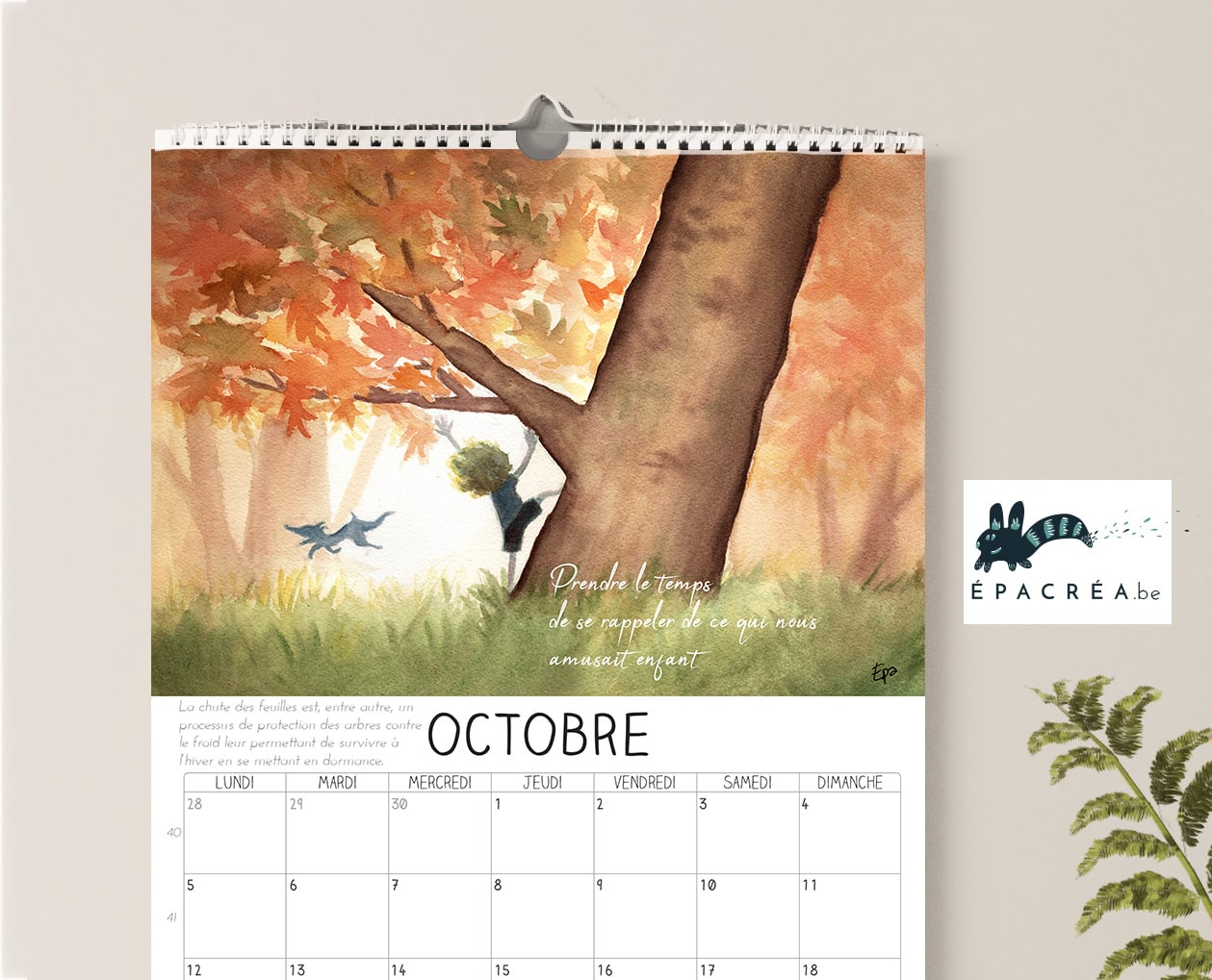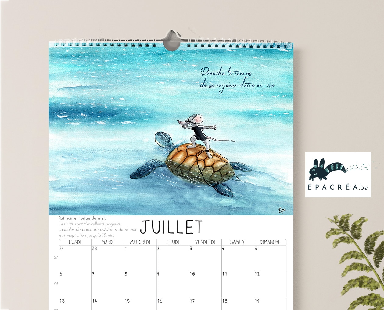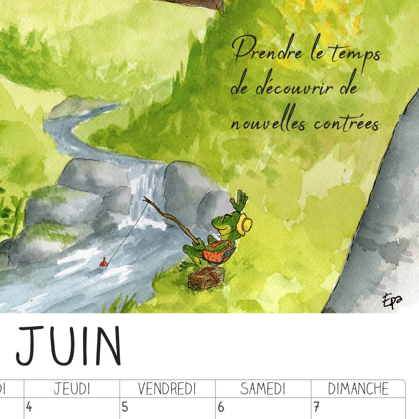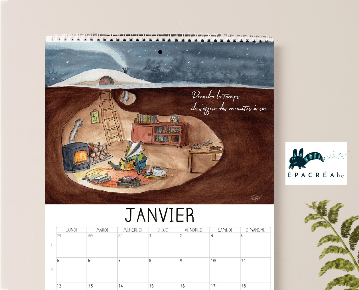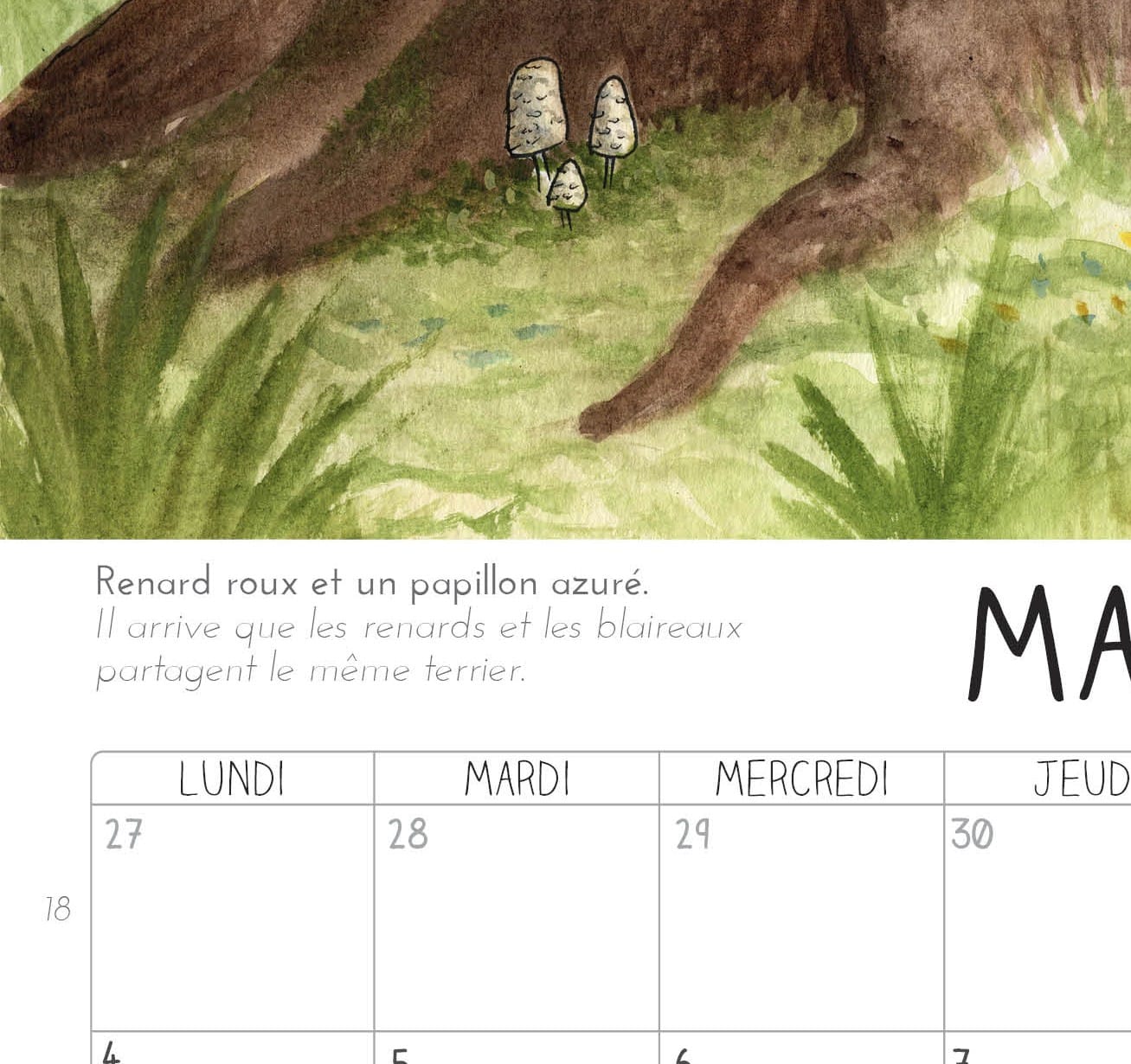 – une aquarelle par mois avec une petite phrase sur le thème de « prendre le temps » et une info nature. – numéro des semaines