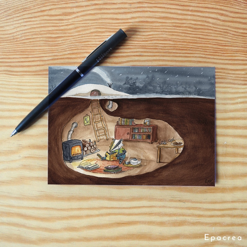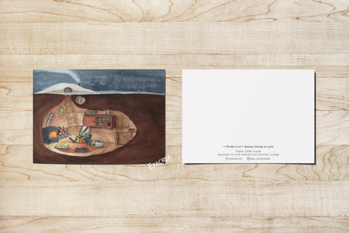 C'est belge : Je dessine et mets en page mes illustrations à l'aquarelle dans mon atelier, à Liège, en Belgique. Elles sont également imprimées à Liège.